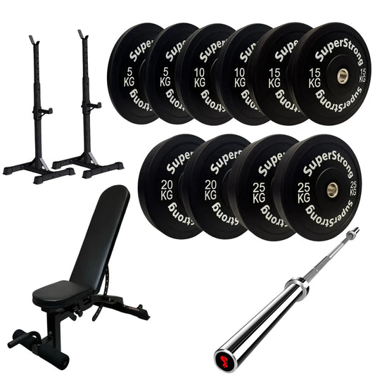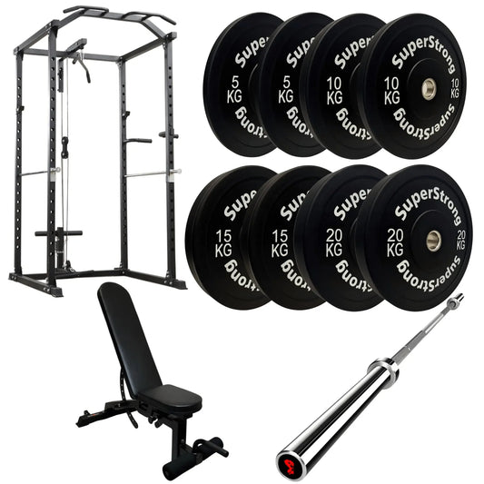 Regular price From £540.99 GBPRegular priceUnit price / per£676.24 GBPSale price From £540.99 GBPYou save 20% (£135.25 GBP)100kg Black Bumper Plate Set with Cable Squat Rack & 7FT Barbell