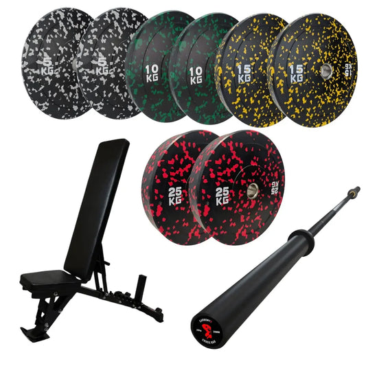 Regular price From £365.99 GBPRegular priceUnit price / per£457.49 GBPSale price From £365.99 GBPYou save 20% (£91.50 GBP)110kg Flecked Bumper Plates with Black Cross Bar Bundle