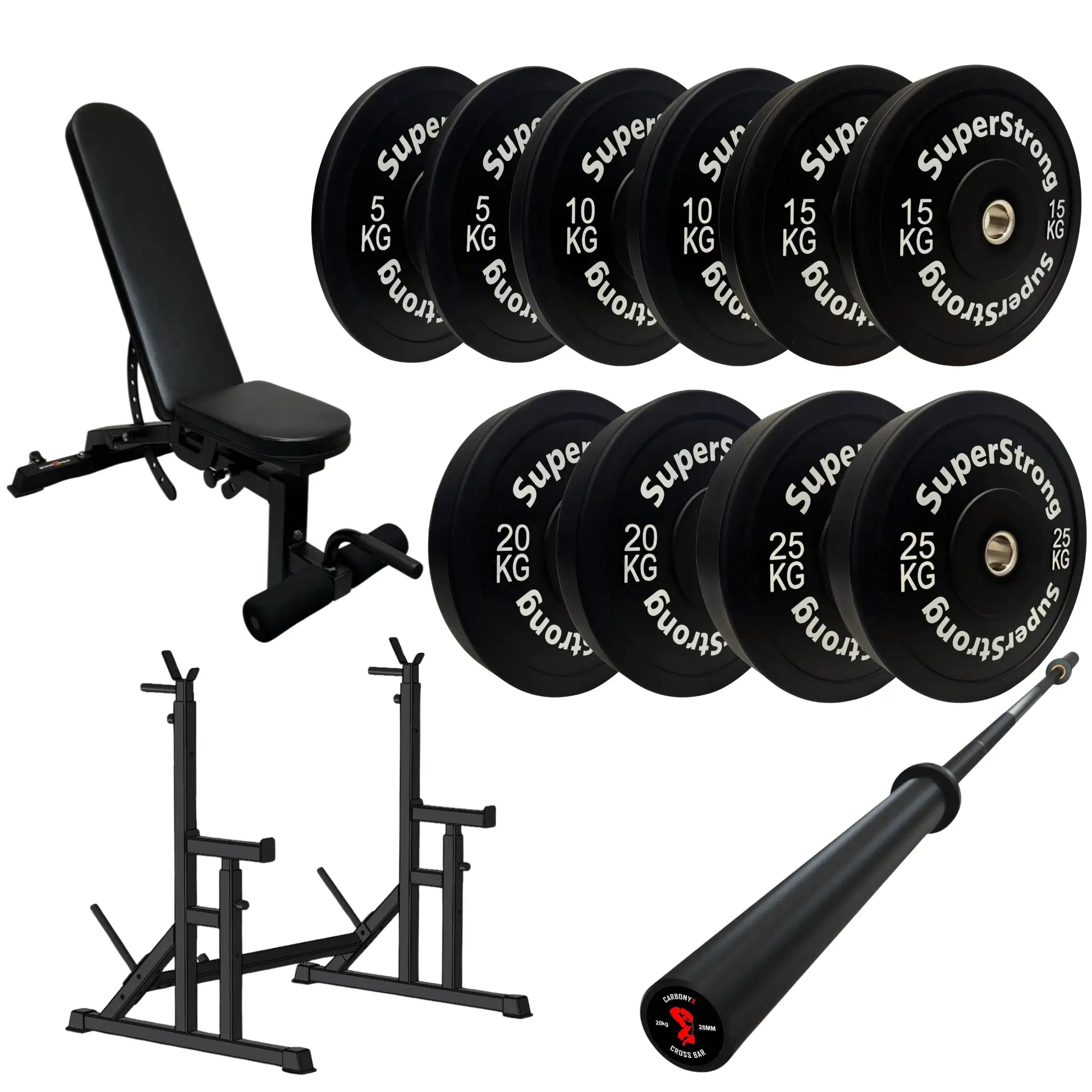 The SuperStrong 150kg bumper weight set is ideal for Olympic lifters, CrossFit enthusiasts, and athletes who need a durable, high-quality barbell and bumper plates.
