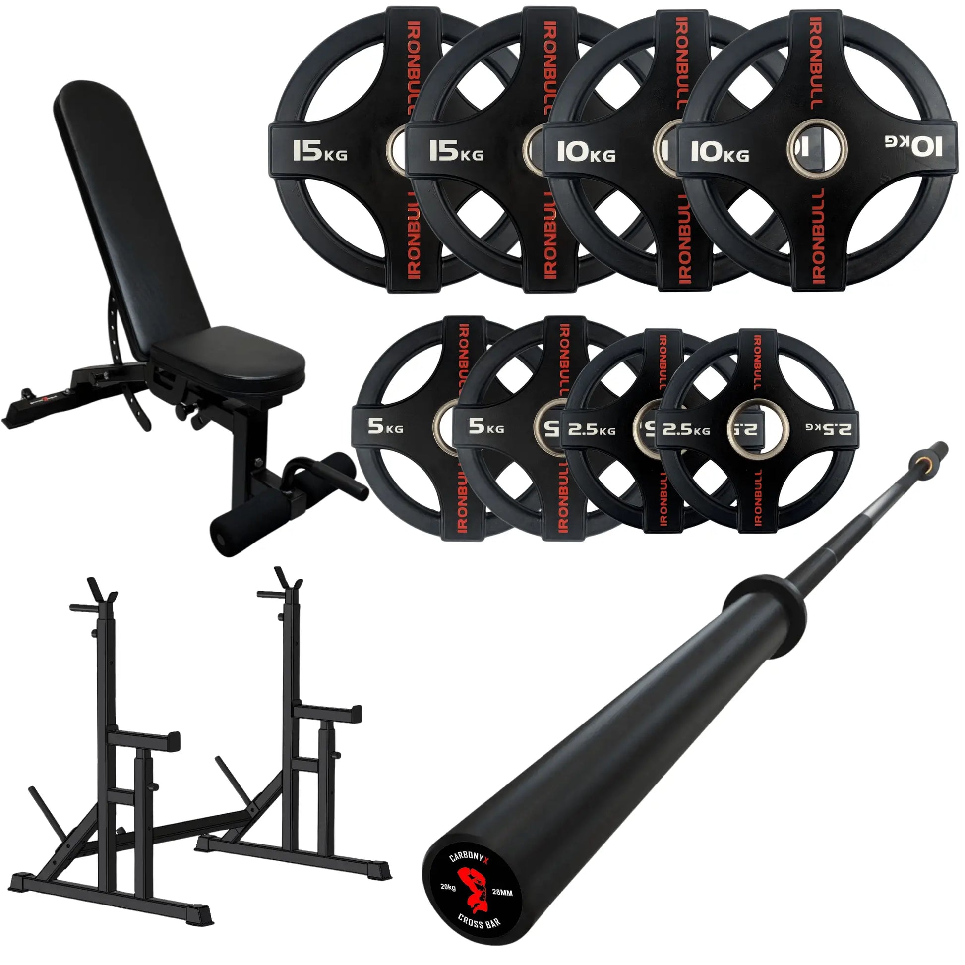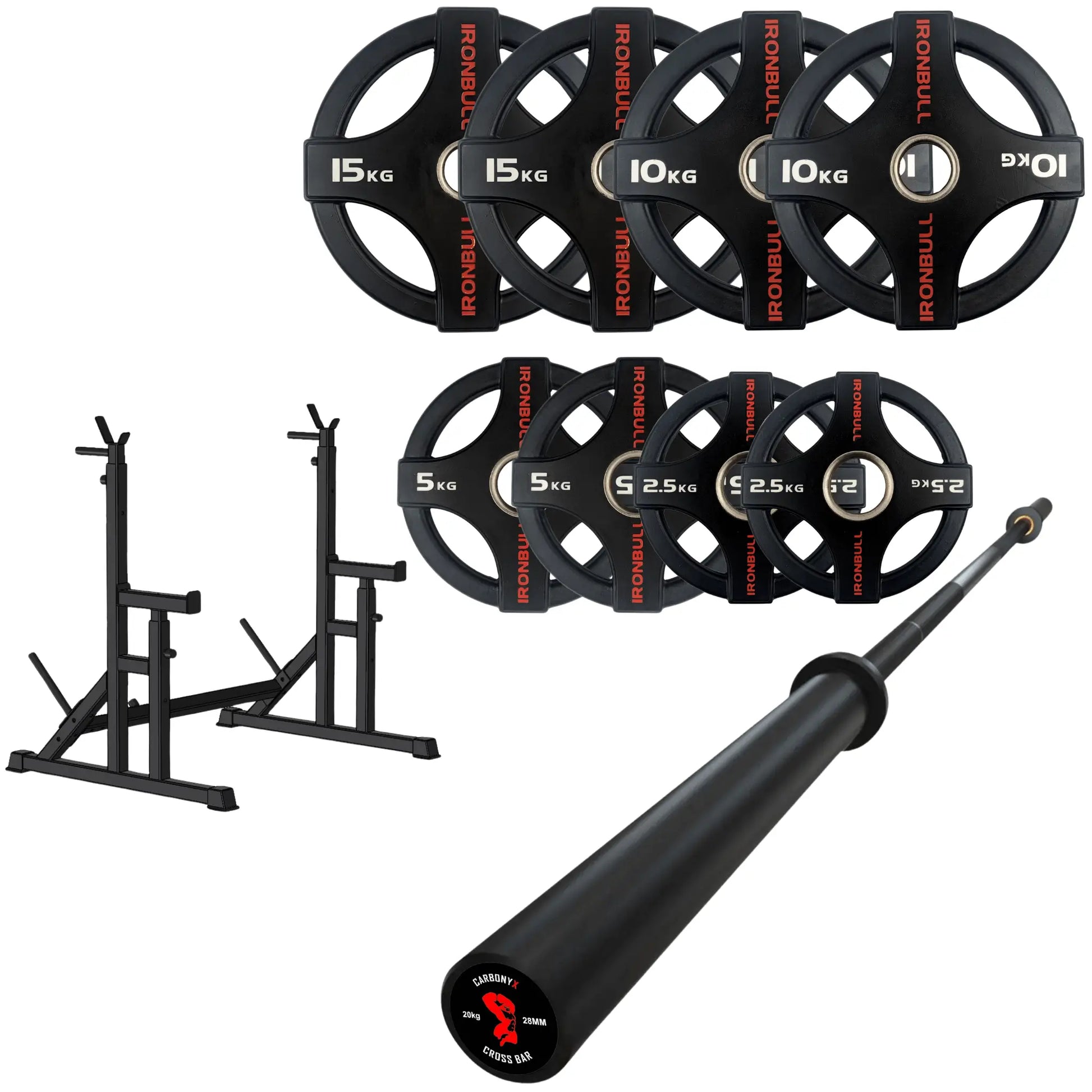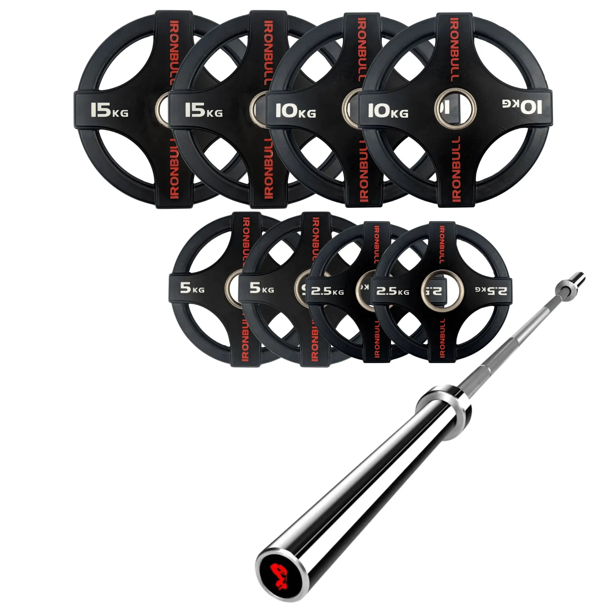 This 65kg Quad Grip plate set is ideal for the athlete who is in need of durable, high-quality plates that are multi functional and look the part.
